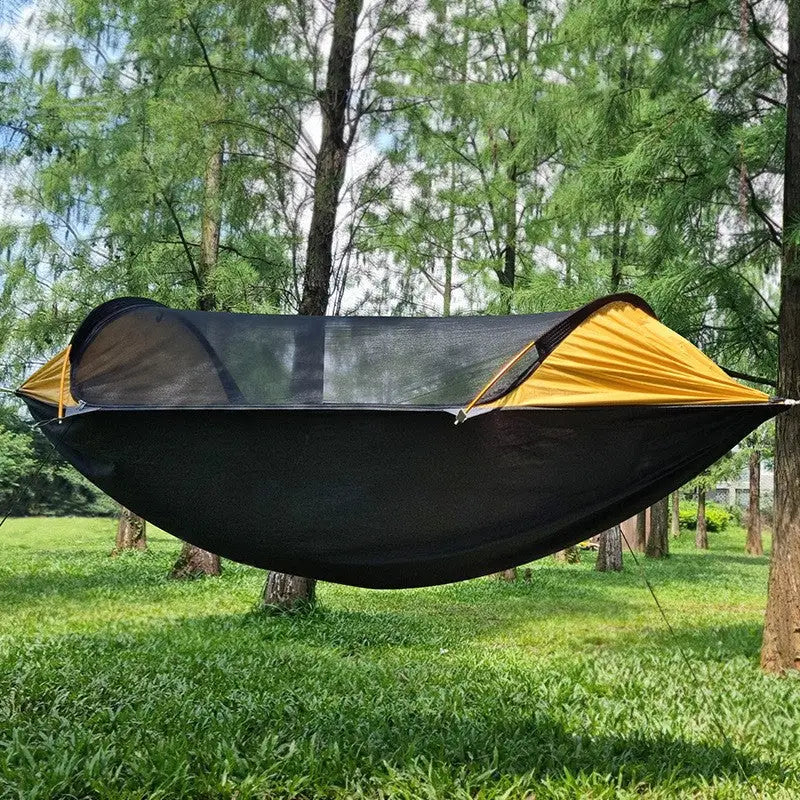 This 2 Person Camping Hammock with Mosquito Net in 70D nylon, using parachute technology, combines lightweight construction with extreme strength for pairs seeking adventure. Capable of supporting 200 kg, it comfortably accommodates two trekkers and their kit. The integrated mosquito net ensures complete protection against flying pests, crucial during bivouacs in forested areas. Its weight and compact format make it ultralight equipment for long expeditions. The fixing system allows quick and secure installation, ideal for frequent camp changes.