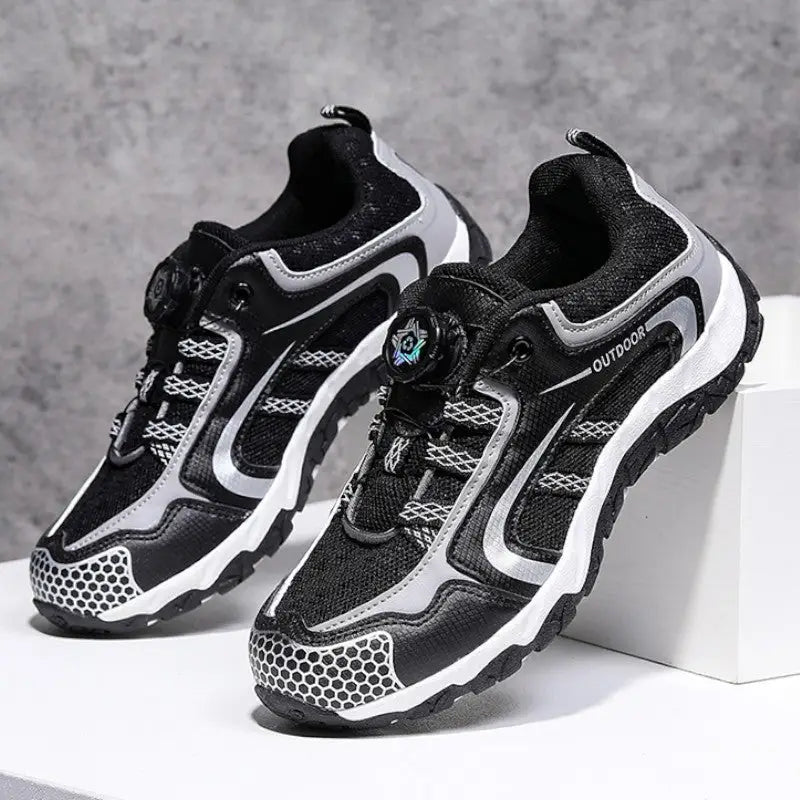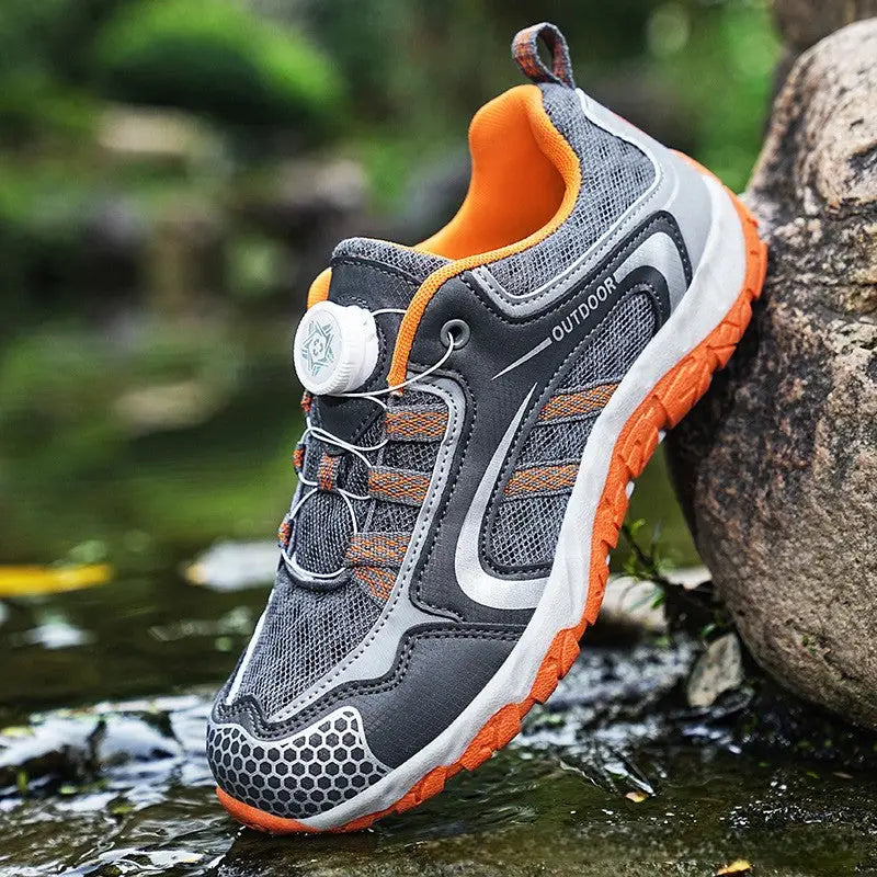 These Supportive Hiking Shoes for Women combine synthetic leather and mesh for a practical balance of durability and breathability. The rubber outsole delivers dependable grip across varied terrain. Ventilated mesh panels keep feet comfortable, whilst cushioned support provides effective shock absorption. Reinforced PU panels and high-wear areas ensure these shoes stand up to regular use on woodland trails and roads alike.